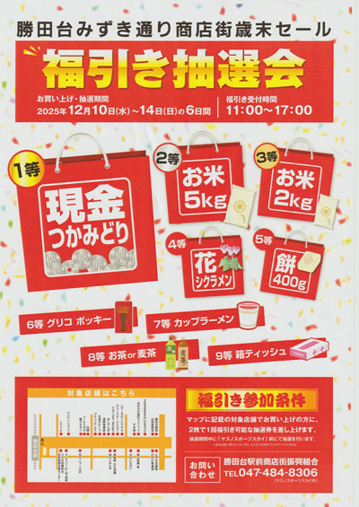 | 勝田台駅前商店街は、千葉県北西部に位置し、八千代市内の京成成田線勝田台駅南口に形成された商店街です。 京成勝田台駅は地下鉄東西線西船橋からの延伸である東葉高速線とのターミナルにもなっています。 |